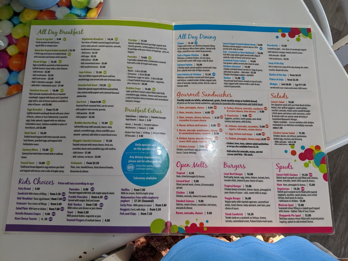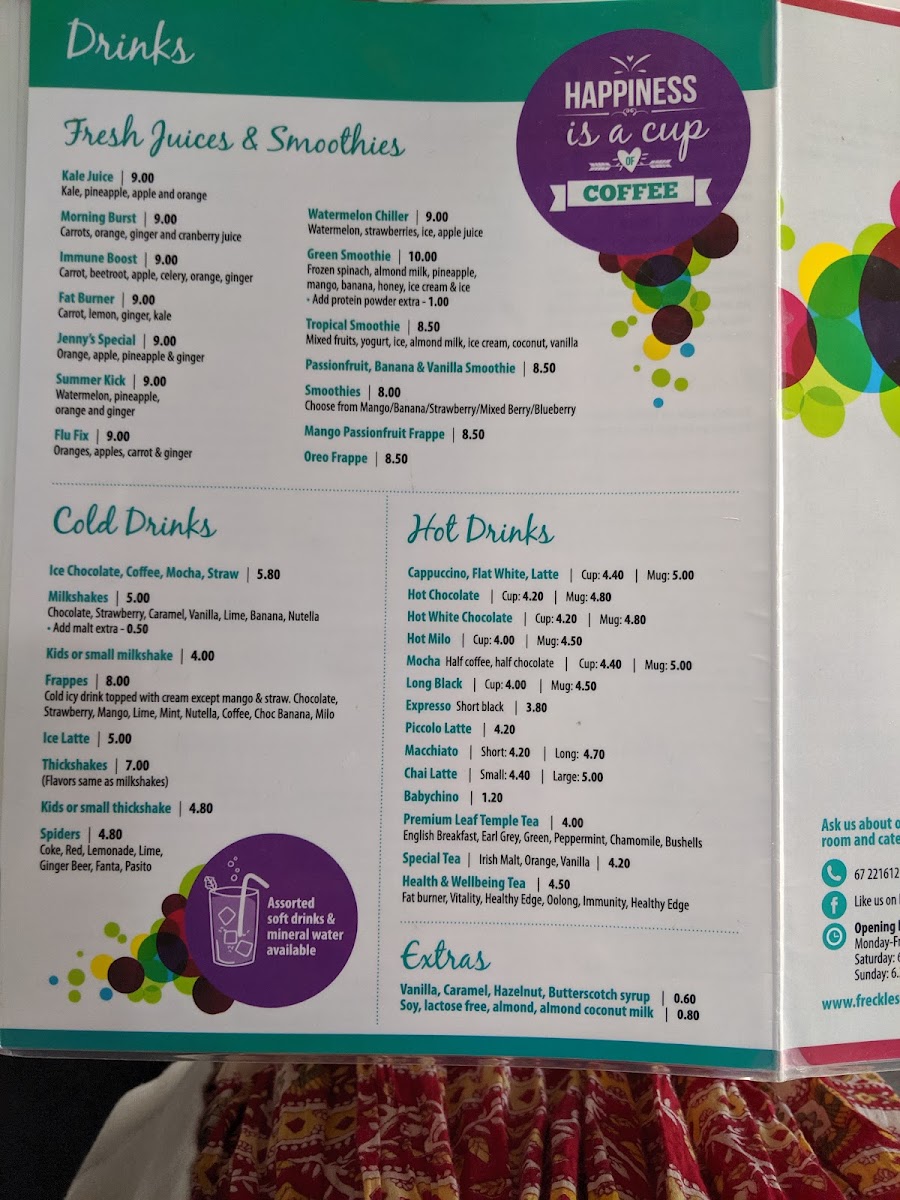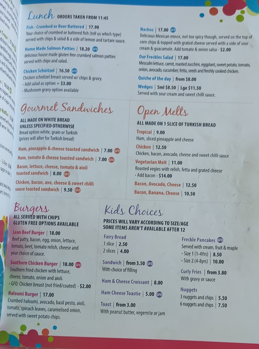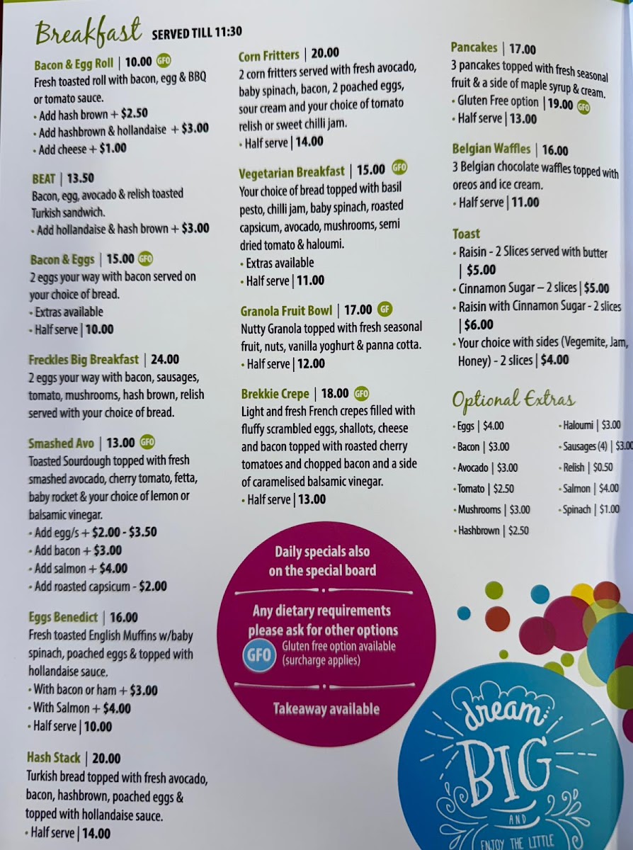 Freckles Cafe Menu